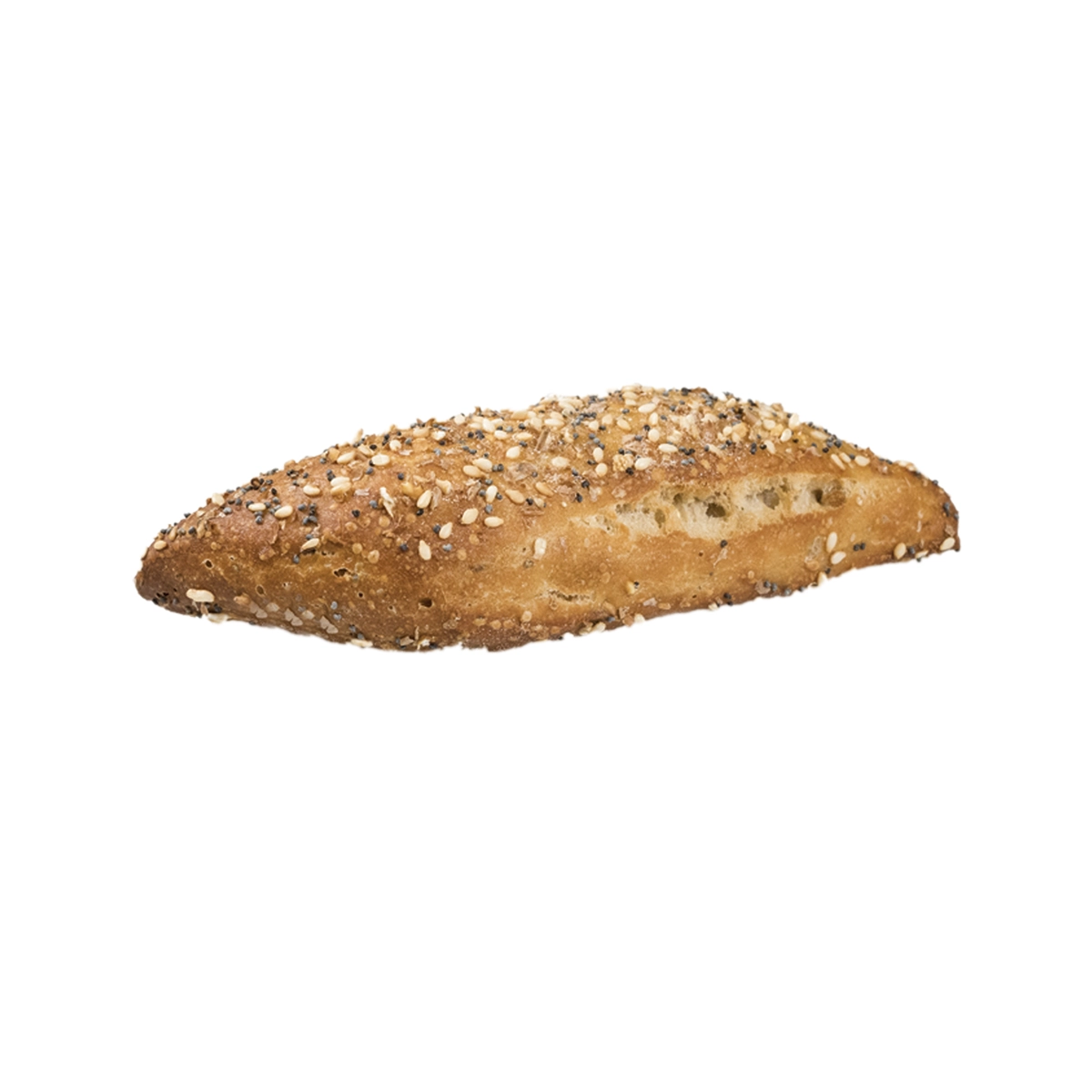 Individual roll, sprinkled with roasted seeds. Very tasty and very crispy. Semi-wholemeal flour.
