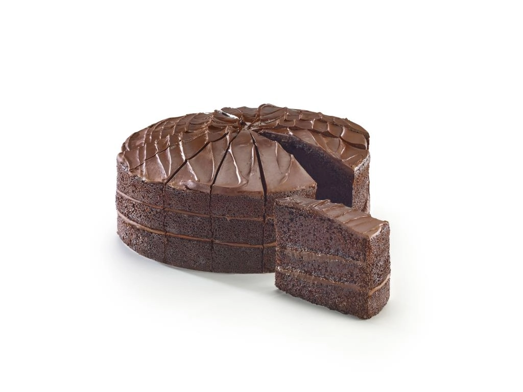 A rich chocolate dessert with layers of moist chocolate sponge, filled with velvety chocolate fudge icing, finished with dark chocolate shavings.