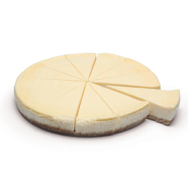 Madagascan vanilla baked cheesecake on a crunchy granola base. Made using non-gluten containing ingredients. Precut into 12 portions.